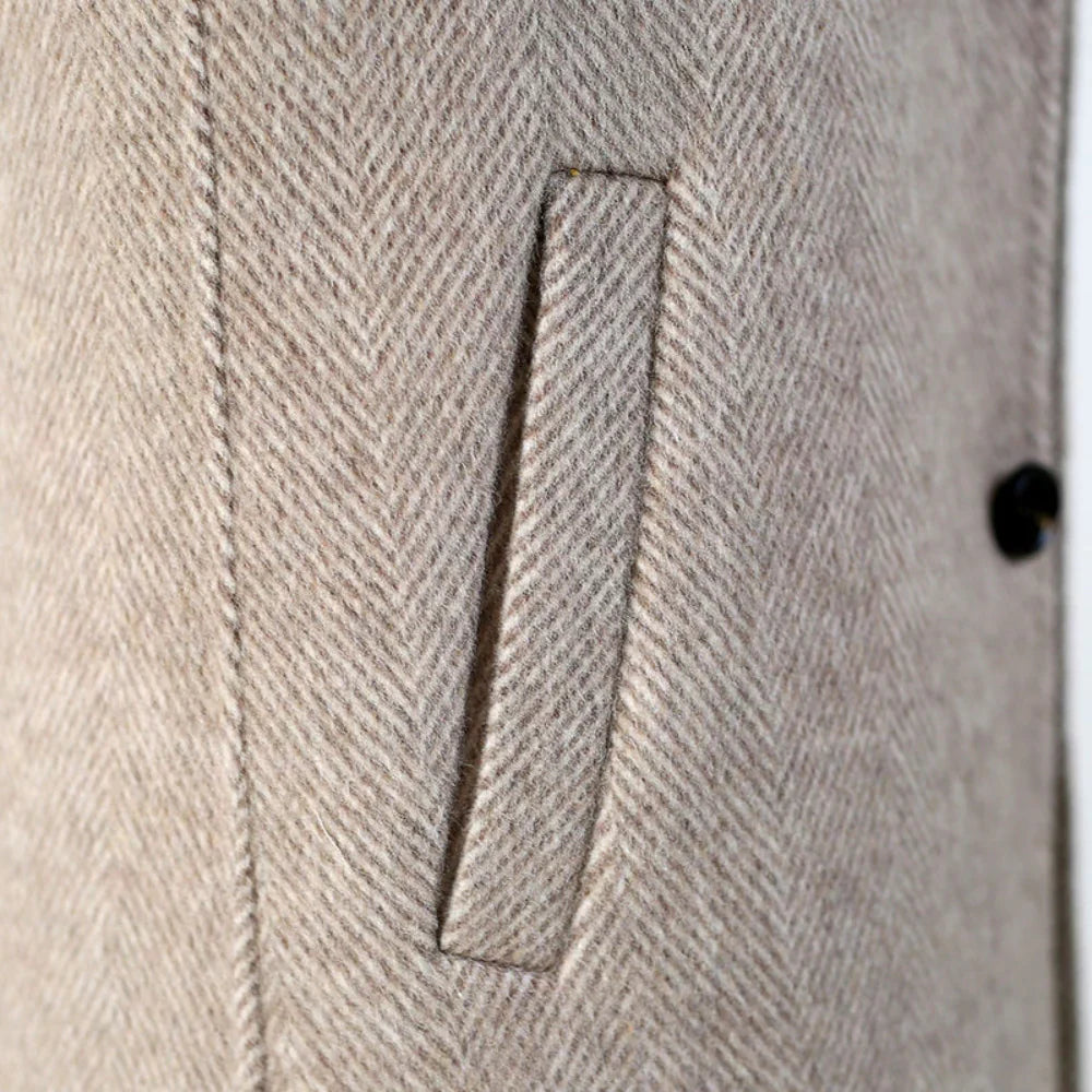 Luxusní materiál – Kabát je vyroben z 80 % kašmíru, který spojuje jemný luxus s výjimečnou trvanlivostí.