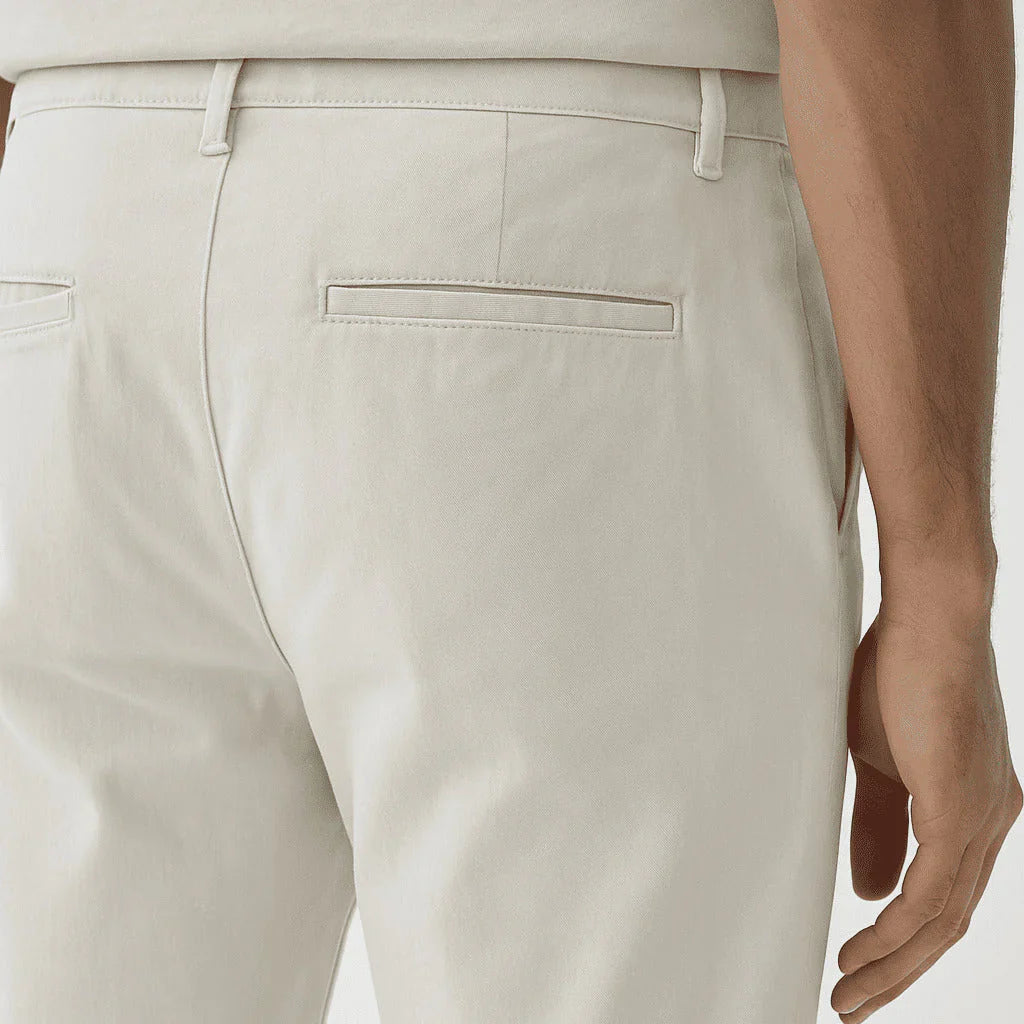 Nová řada Chino Cut Twill je vyrobena z vysoce husté kepru s obsahem bavlny a elastanu, což poskytuje odolnost, měkkost a volnost pohybu. Má střih inspirovaný krejčovstvím, s předními šikmými kapsami a klasickými zadními kapsami. Tkanina má přirozený odstín, bez barvení, což zaručuje delší trvanlivost barvy.