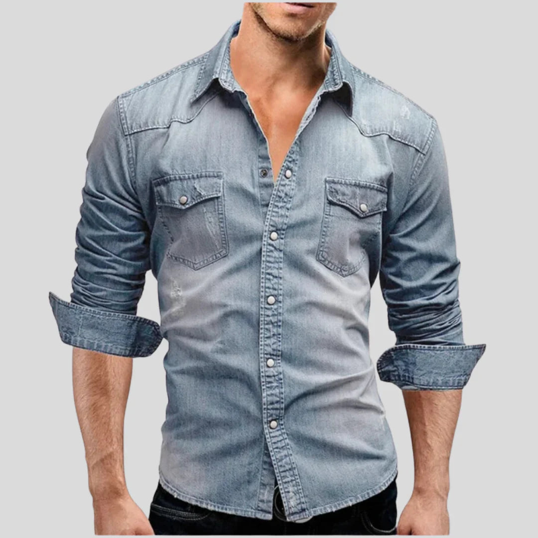 Vylepšete svůj šatník touto univerzální denimovou košilí, vyrobenou z měkkého, snadno pratelného denimu pro robustní, ale rafinovaný styl. Perfektní jak na volné dny, tak na formálnější příležitosti.