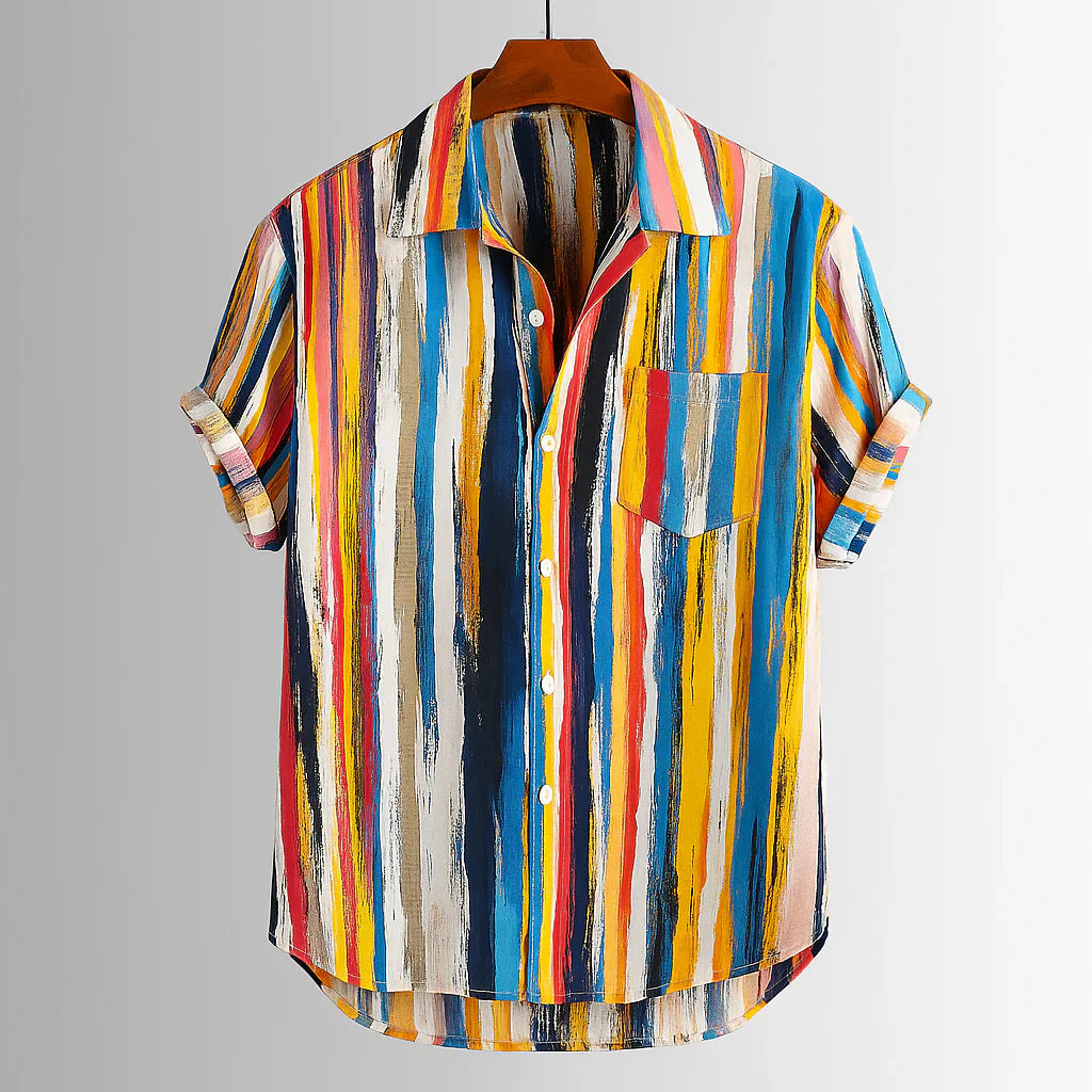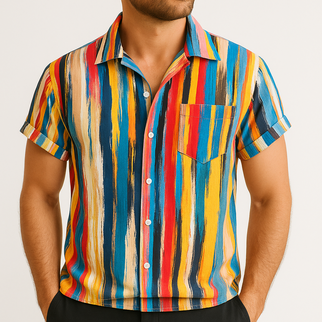 Vstupte do léta s důvěrou a barvami! Košile Miguel ohromuje svým živým, abstraktním vzorem a množstvím nápadných barev. Je vyrobena z lehkého a prodyšného bavlněného materiálu, který vás udrží v chladu a pohodlí – i v těch nejteplejších dnech.